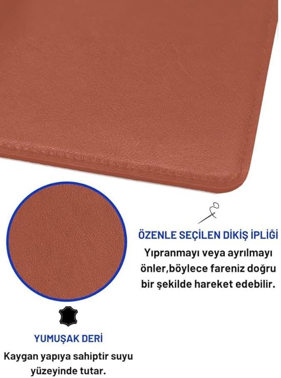Çok Amaçlı Kullanım: Sadece fare için değil, aynı zamanda klavye altına veya diğer masaüstü eşyalarınızın altına da konabilir. Bu, çalışma alanınızı düzenlemek ve optimize etmek için ek bir avantaj sağlar. Şıklık ve Profesyonellik: Deri mouse pad’in zarif ve şık görünümü, hem evde hem de işyerinde profesyonel bir hava katmaya yardımcı olur. Bu, kullanıcıların çalışma alanlarını kişiselleştirmelerine ve estetik açıdan hoş bir ortam oluşturmalarına olanak tanır.
