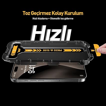 Toz Geçirmez Kolay Kurulum : Hızlı kurulum aparatına entegre toz alma etiketi ile birkaç saniyede kusursuz bir şekilde uygulama yapabilirsiniz.