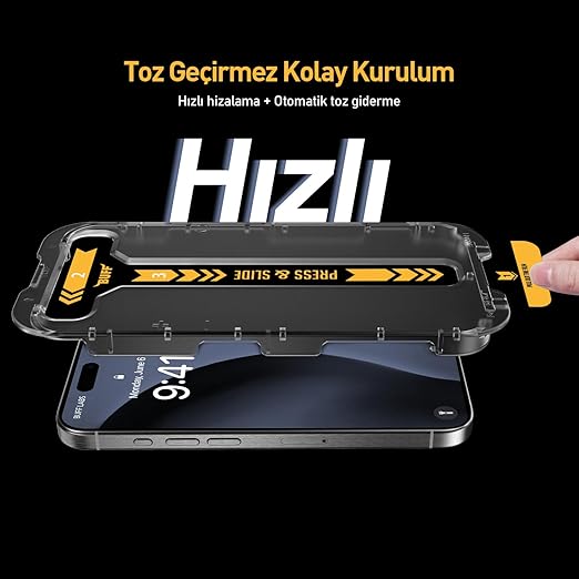 Toz Geçirmez Kolay Kurulum : Hızlı kurulum aparatına entegre toz alma etiketi ile birkaç saniyede kusursuz bir şekilde uygulama yapabilirsiniz.