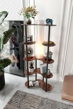 Lambader – Ceviz Renkli Ahşap Görünümlü Şık Tasarım, Geniş Taban Yüzeyi (65×36 cm), 150 cm Yükseklik, E27 Duy Uyumlu, LED Ampul ile Kullanılabilir, Modern ve Kolay Kurulumlu Lambader