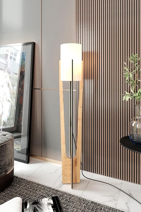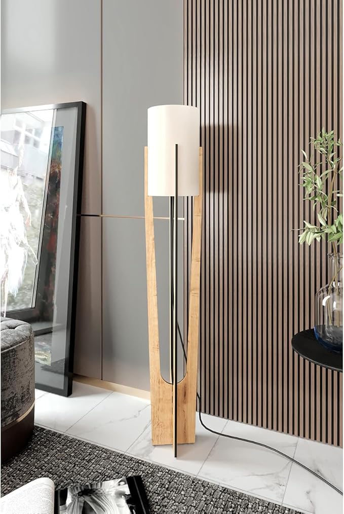 Lambader – Modern Ahşap Görünümlü Gövde, 135 cm Yükseklik, Kompakt Kare Taban (23×23 cm), E27 Duy Tipi LED Ampul Uyumlu, Kolay Kurulumlu Göz Yormayan Işık (Mese)
