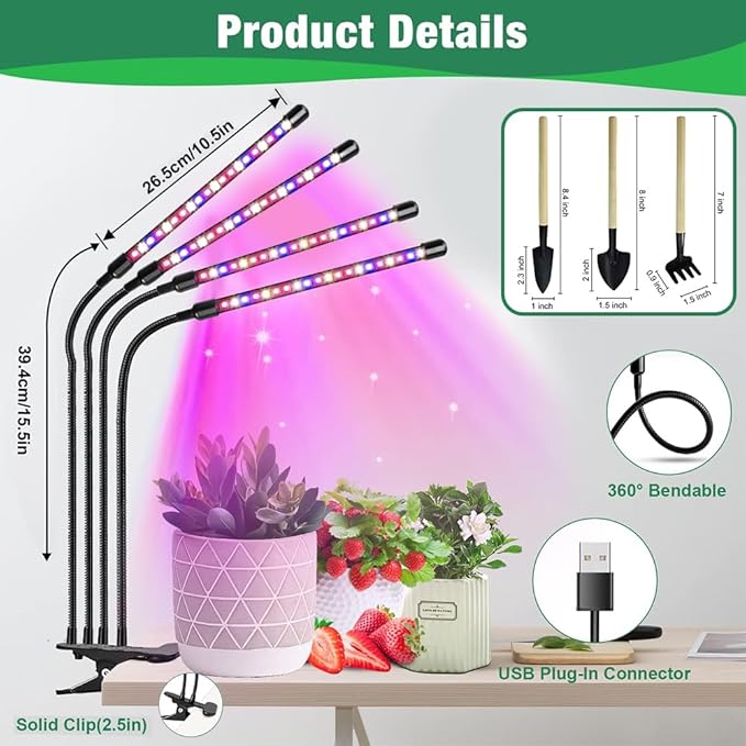 【Paket içeriği】 1 LED tam spektrumlu bitki lambası, bir set bahçe aleti (2 farklı şekilli kürek ve 1 tırmık), bitki lambasının eşit ışık ve daha yüksek ışık gücü için toplam 80 kaliteli LED boncuk (52 kırmızı, 28 mavi) vardır. Oda bitkileri için mükemmel.