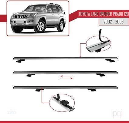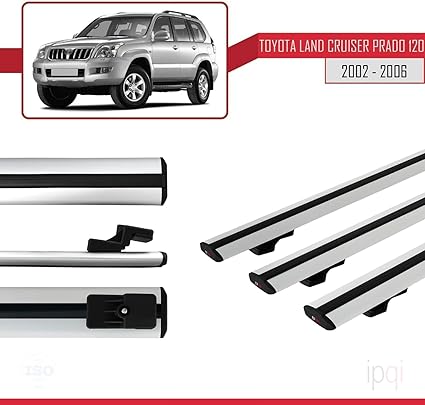 Land Cruiser Prado (J120) 2002-2006 Arası ile Uyumlu BASIC Model Ara Atkı Tavan Barı Gri 3 Adet