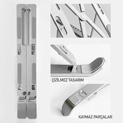 Taşınabilir Tasarım: Kompakt ve hafif yapısıyla kolayca taşınabilen bu dizüstü bilgisayar standı, her yere rahatlıkla götürülebilir.