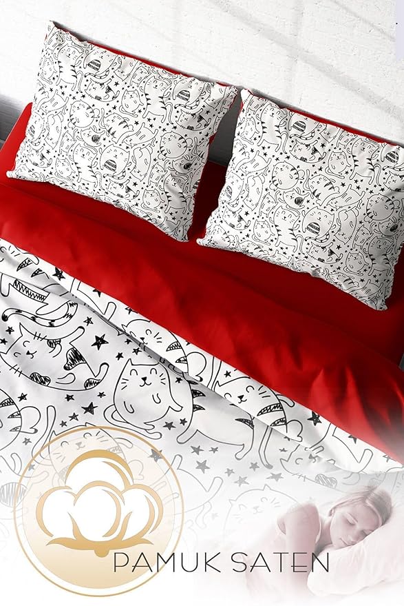 Lastikli Çarşaflı%100 Pamuk Saten Çift Kişilik Nevresim Takımı Catsy