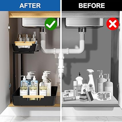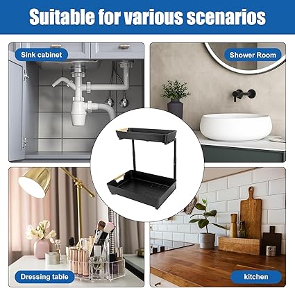 【Çok Kullanımlı】Mutfak lavabolarının altındaki orta büyüklükteki alanlar için tasarlanan bu çok yönlü düzenleyici, ayarlanabilir raf yüksekliklerine sahiptir, bu da onu mutfaklarda, banyolarda ve çamaşır odalarında kişiselleştirilmiş saklama ihtiyaçları için ideal bir çözüm haline getirir. Lavabo dolabının içinde veya dışında konumlandırılmış olsun, sorunsuz bir şekilde entegre edilebilir.