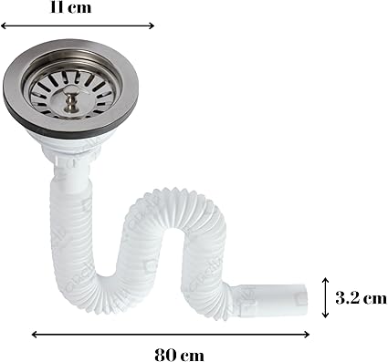 Lavabo Sifonu, 11 cm Geniş Başlık, 80 cm Uzunluk, Körüklü Plastik Gider Borusu