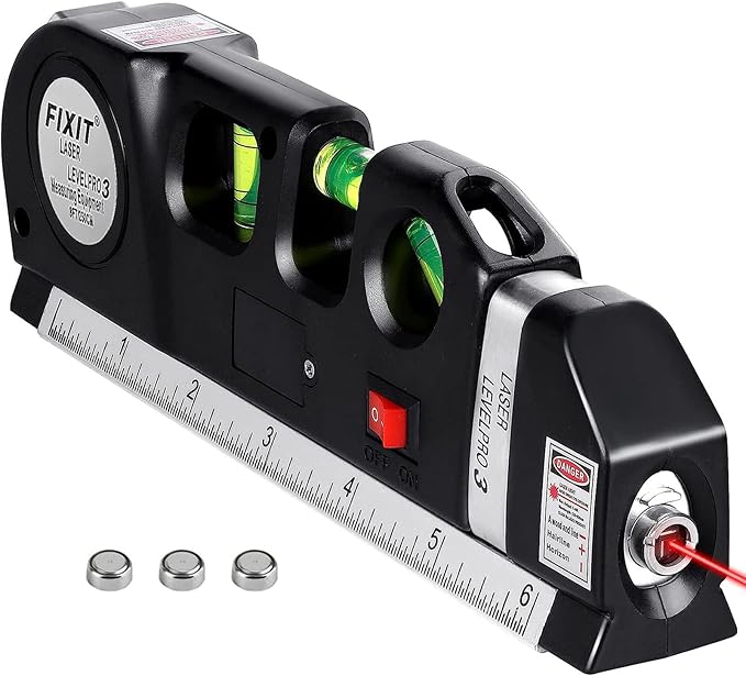 Lazer Seviyesi, Qooltek M amaçlı Çapraz Çizgi Lazeri 8 feet Şerit Metresi Resim asmak için Ayarlanmış Standart ve Metrik R’ler Manyetiksiz Siyah