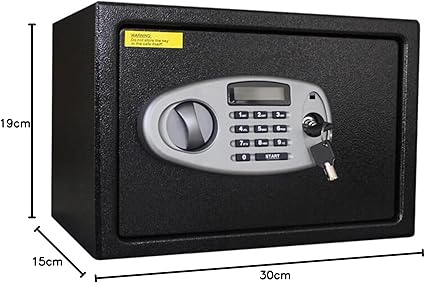 LCD Ekranlı Küçük Boy Kasa Y-SS0000NFP – Standart güvenlik – Master Şifre – 2 Adet 6 Şifeli Anahtar – 20 x 31 x 20 cm – Siyah