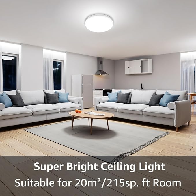 SÜPER PARLAK & Enerji Tasarrufu: 2200lm süper parlak ve eşit hafif ve sütlü plastik abajur gözlerinizi parlamaya ve parlamaya karşı korur Lambayı yaklaşık 12 ila 20 m²’lik bir odaya monte edebilirsiniz İki 100 W akkor ampulü bu 24 W LED tavan lambası ile değiştirin ve elektrik faturalarında%88’den fazla tasarruf edin Enerji tasarrufu yapın: İki 100 W akkor ampulü bu 24W LED tavan lambası ile değiştirin ve elektrik faturalarında%88’den fazla tasarruf edin