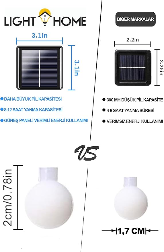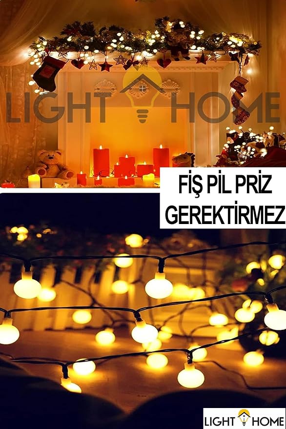 Renk:Sarı (Gün Işığı) Ampul miktarı: 50 LED Uzunluğu : 7 Metre Güneş Enerjili