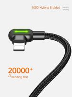 Led 90 Derece Şarj Kablosu Açılı Usb Kablosu Açılı Naylon Örgülü Hızlı Şarj Cihazı Veri Senkronizasyon L Şeklinde Kablo Adaptörü iPhone X 8 7 6 Plus Pad Pod (1,8 M) ile Uyumlu