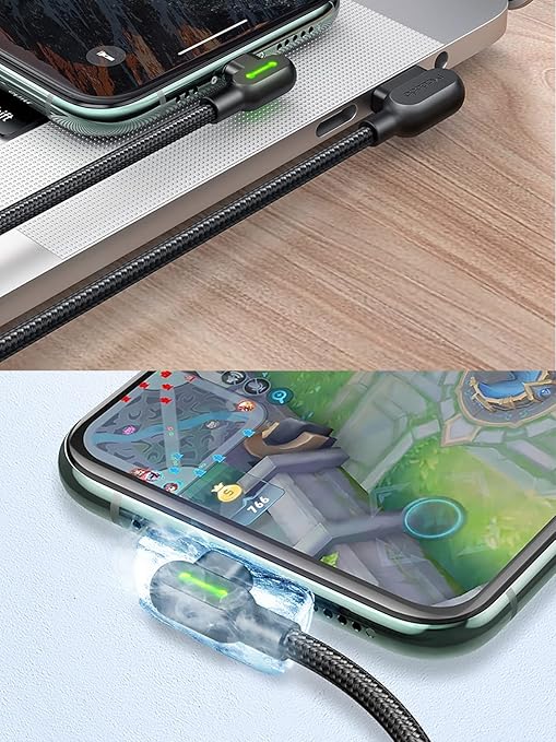★ Benzersiz tasarım: LED + L şeklinde aydınlatma kablosu, bu dik açılı flaş kablosu oyuncular için mükemmeldir. İstediğiniz gibi oyun oynayabilir veya video izleyebilirsiniz. L tipi tasarım bükülmeyi azaltır ve kullanım sırasında arayüzü korur. Ürünün ömrünü de uzatabilir