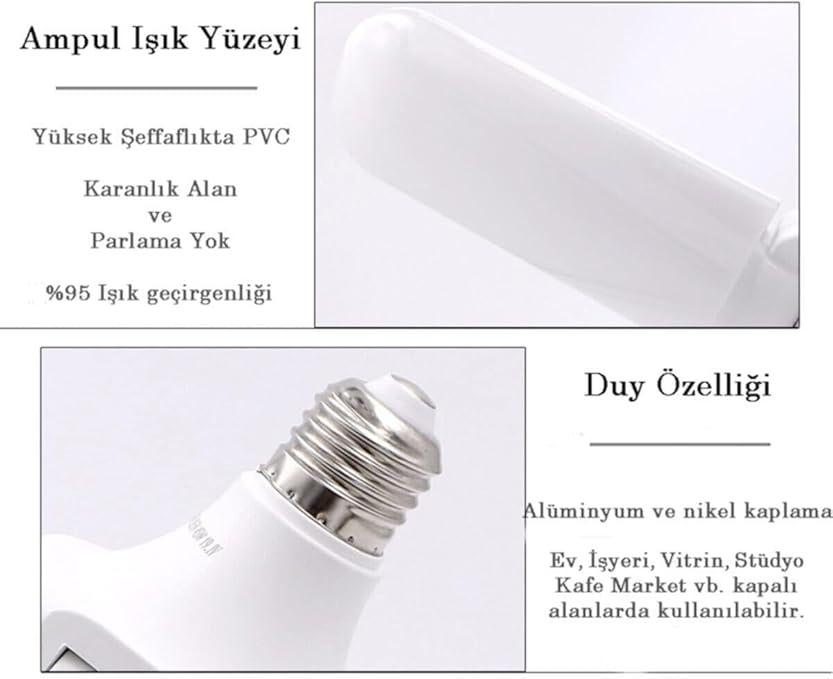 “Led Ampul 3 Kollu Katlanabilir Cata 42w 6400k Beyaz Işık Yaprak Led Ampul” için yorum yapan ilk kişi siz olun Yanıtı iptal et