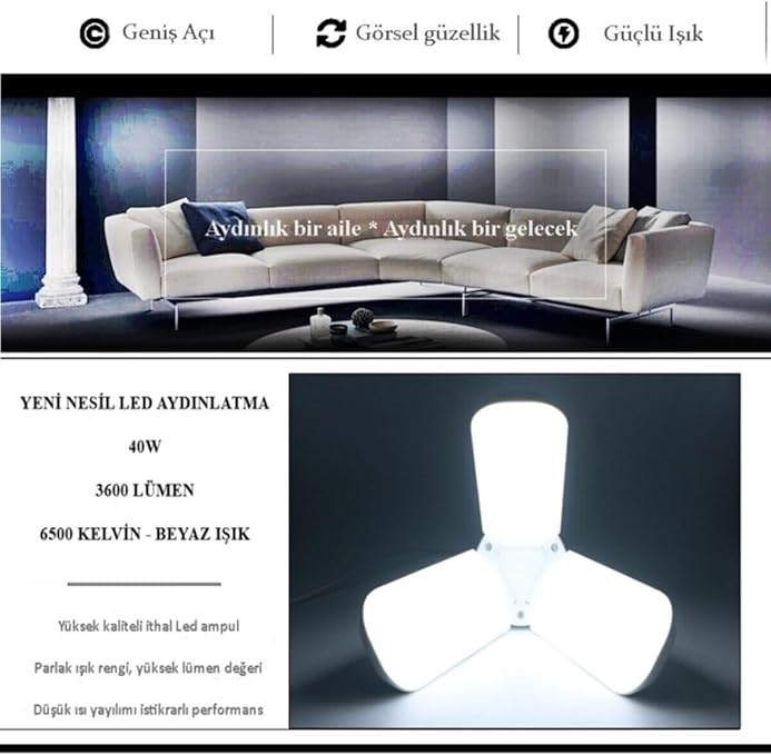 Led Ampul 3 Kollu Katlanabilir Cata 42w 6400k Beyaz Işık Yaprak Led Ampul
