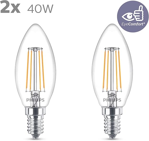 LED Classic 40W B35 Led Mum Filament Ampul, 2700K Sarı Işık, E14 İnce Duy, Dim Edilmez, 2’li Ekopaket