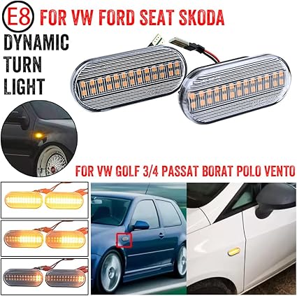LED dinamik yan işaretleyici dönüş sinyal ışığı V-W B-ora Golf 3 4 P-assat 3BG Polo 6N SB6 S-EAT Ibiz-a Le-on Sk-oda Fo-rd (beyaz kristal (güncellenmiş versiyon))