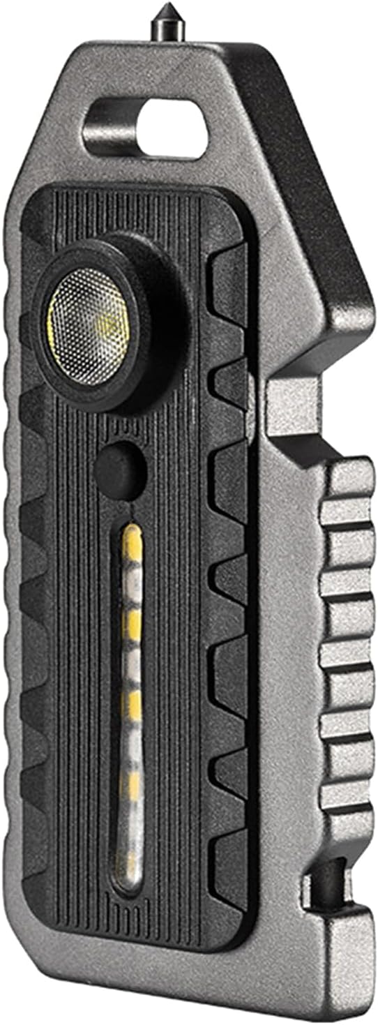 Şişe açacağı, acil pencere kırma çekici, hayatta kalma düdüğü ve uyarı ışığı ile çok işlevli tasarım.