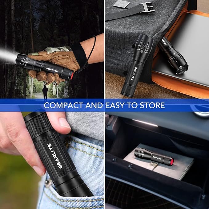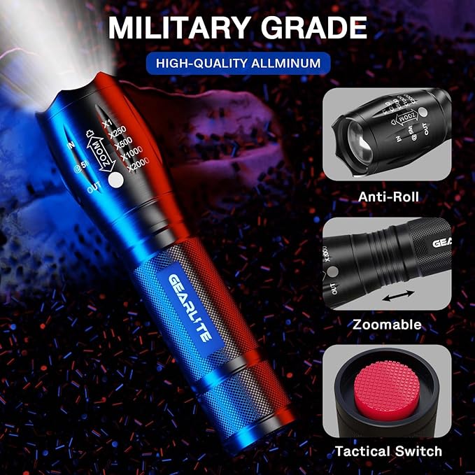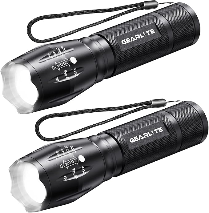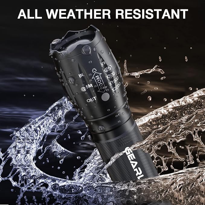 LED el feneri pille çalışan 2 parça, 2000 lümen el feneri 5 modlu son derece parlak LED, kamp, yürüyüş, açık, acil durum için çocuklar için IP65 su geçirmez el feneri