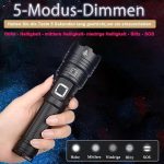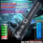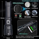 LED el feneri son derece parlak 15000 lümen CREE XHP70.2 LED, USB şarj edilebilir el feneri, IPX67 su geçirmez, şarj edilebilir meşale kamp, yürüyüş ve acil durumlar için (1 x 21700 pil dahil)