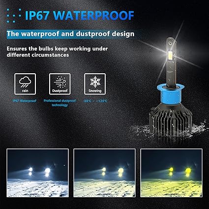 3 Renkli Tasarım: İsteğe göre 3 renk değiştirilebilir, far ampulü sürüş ihtiyaçlarınızı karşılamak için 6000K beyaz ışık, 4300K beyaz+sarı ışık ve 3000K sarı ışık arasında geçiş yapabilir. İstenen ışık rengine geçmek için açmanız/kapatmanız yeterlidir.