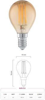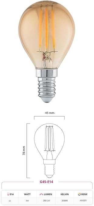 Led Filament Ampul 4 Watt E14 Duy Sarı Işık Dekoratif Vintage Aydınlatma (1, G45 Amber Cam)