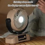 360° Salınım ve 2 Yönlü Montaj: Otomatik yatay salınım (120°) ve manuel dikey eğim (90°) hava akışını tam olarak ihtiyacınız olan yere yönlendirin – masalarda kullanın, çadır direklerine asın veya kamp sandalyelerine takın. Kompakt tasarım (11,8 inç uzunluğunda) sorunsuz taşıma için sırt çantalarına veya araba botlarına kolayca sığar