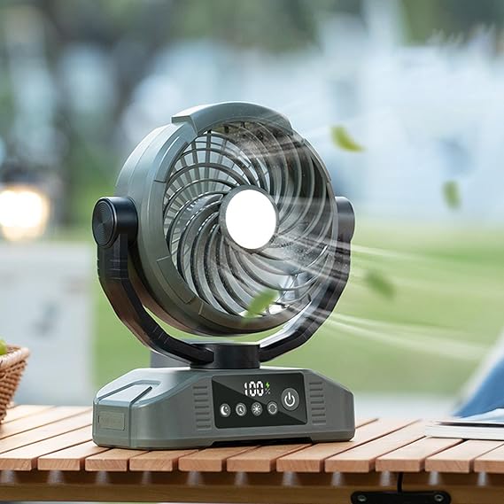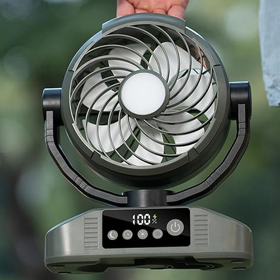 360° Salınım ve 2 Yönlü Montaj: Otomatik yatay salınım (120°) ve manuel dikey eğim (90°) hava akışını tam olarak ihtiyacınız olan yere yönlendirin – masalarda kullanın, çadır direklerine asın veya kamp sandalyelerine takın. Kompakt tasarım (11,8 inç uzunluğunda) sorunsuz taşıma için sırt çantalarına veya araba botlarına kolayca sığar