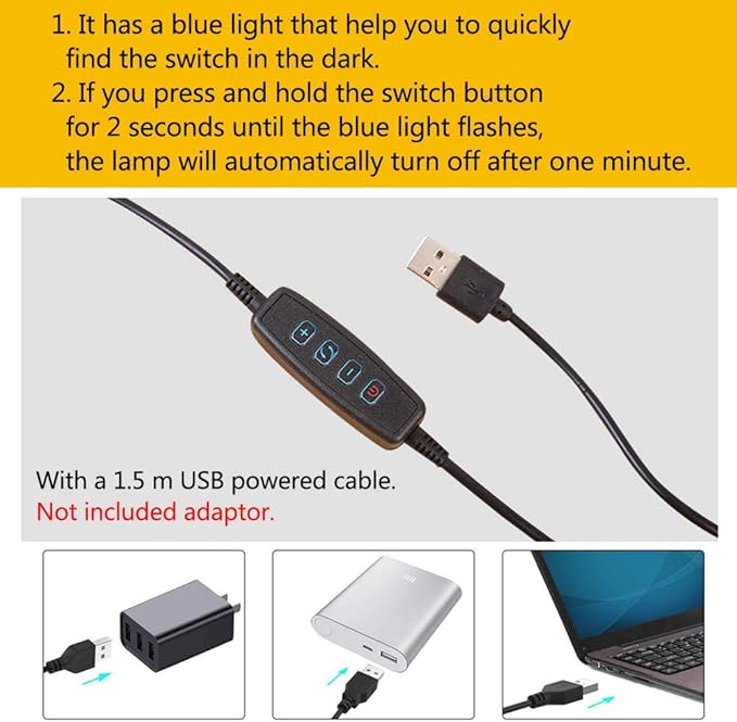 【Enerji tasarruflu ve USB ile çalışır】 LED masa lambası geleneksel ampullere göre yaklaşık %75 daha az enerji tüketir, para tasarrufu sağlar ve elektrik faturanızı düşürür. Lamba 1,5 m USB ile çalışan bir kablo ile gelir ve USB güç bankası veya dizüstü bilgisayar gibi her USB cihazıyla çalıştırılabilir, çok pratiktir. Ürünümüzle ilgili herhangi bir sorun olması durumunda her zaman ziyaretinizi dört gözle bekliyoruz.
