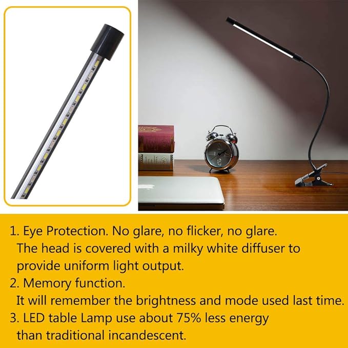 LED kıskaçlı lamba, kıskaçlı okuma lambası, kıskaç, göz koruması, yatak lambası, 3 ışık modu ve 10 parlaklık seviyesi, USB ile çalışır, taşınabilir, esnek, kuğu boynu, okuma lambası, yatak odası, ofis