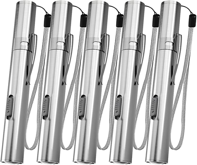 LED Küçük El Feneri USB Teşhis Tıbbi Mini Penlight, Cep Klipsli Paslanmaz Çelik Su Geçirmez Şarj Edilebilir Penlight + Mekanik için USB Kablosu (5 adet)