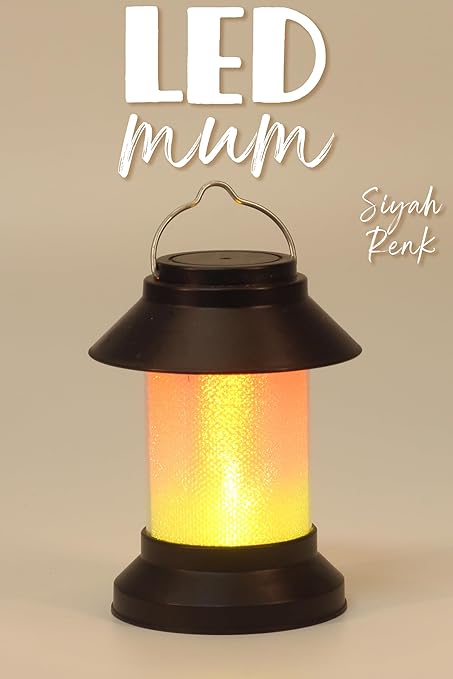 Led Mum Sokak Lambası Tip Kulplu Dumansız Pilli Alevli Dekoratif Yapay Mum Işıldak Siyah 1036-9