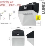 – LED Solar Lamba LUNIS Dış Mekan için Hareket Sensörlü – Ev/Bahçe için Kancalı Solar Duvar Lambası – Sensör Menzili 6 m/120° – 2 Işık Modu, Maksimum 220 lm, Nötr Beyaz – Beyaz-Siyah