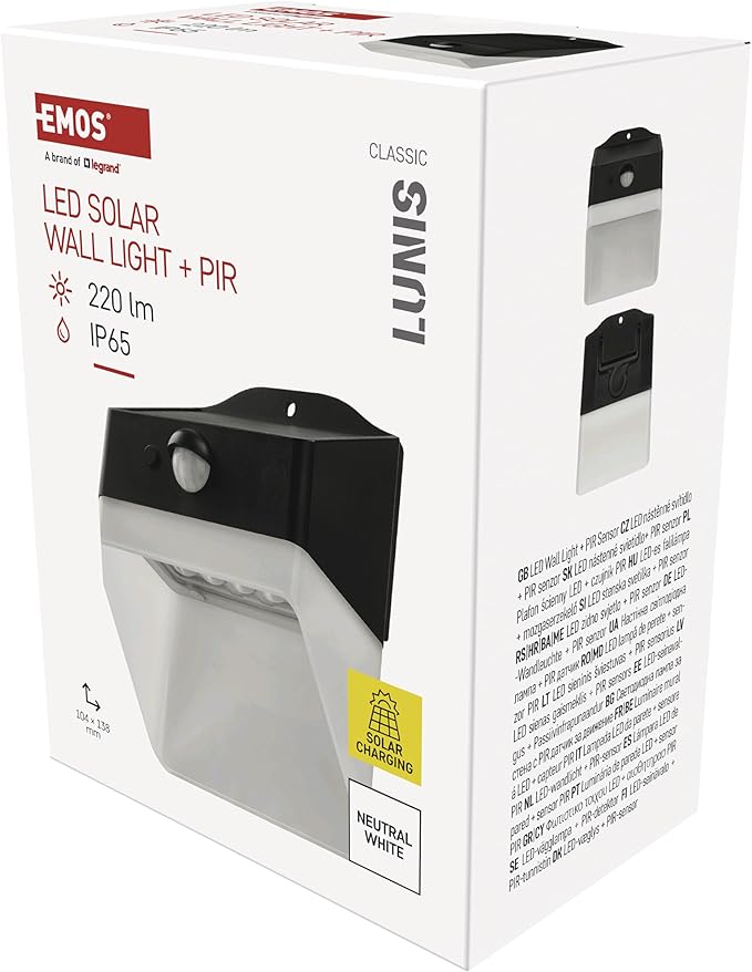 Hava koşullarına dayanıklı: Özellikle yüksek koruma türü (IP65) ile bu solar duvar lambası toz ve su geçirmez. Nötr beyaz ışık rengi (4000 K) ve parlaklık maks. 220 lm kötü hava koşullarında bile akşamları güvenliğinizi sağlar