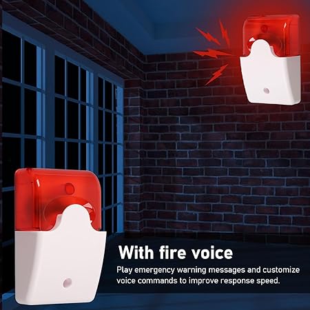 Sağlam Uyarı Sistemi: Yüksek desibeldeki yangın alarm sireni, yangın olaylarına karşı etkili bir şekilde uyarıda bulunmak ve hırsızları caydırmak için güçlü bir ses ve parlak yanıp sönen ışığı birleştirir.