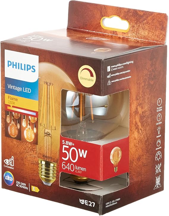 LEDCLA 50W G95 E27 2200K Sarı Işık GOLD Dim Edilebilir Filament LED Ampul
