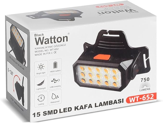 Ledli Sarı/Beyaz Şarjlı Kafa Lambası Watton Wt-652Uygunluk: 19 adet stokta