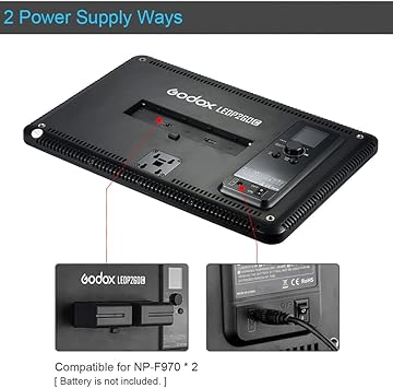 İki tür güç kaynağı, 2* NP-F970 pil veya güç adaptörü. (Pil ayrı satılır.)