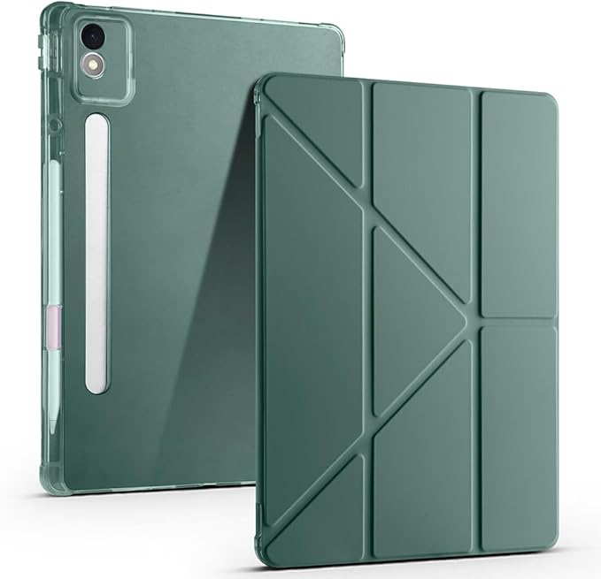 Lenovo Idea Tab Pro 12.7 (TB-373FU/ TB-375FC) ile Uyumlu Kılıf Tri Folding Silikon Kalem Bölmeli Katlanabilir Standlı PU Deri Yumuşak Kapak, [Akıllı Kapak, Uyku Modlu], Koyu Yeşil