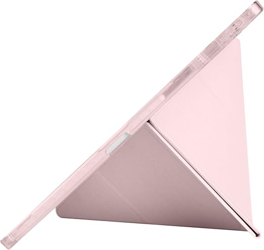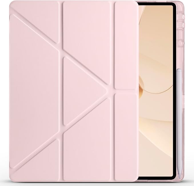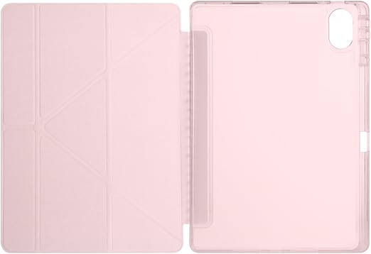 Lenovo Idea Tab Pro 12,7 inç 2025 (TB-373FU/ TB-375FC) ile Uyumlu Kılıf Üçgen Tri Folding Kalem Bölmeli Standlı Kılıfı (Pembe)