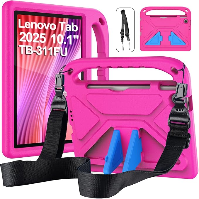 Lenovo Tab Tablet 2025 10,1 inç (TB311FU) için çocuk kılıfı, Eva hafif darbeye dayanıklı koruyucu kılıf, çocuk saplı ve omuz askılı, pembe