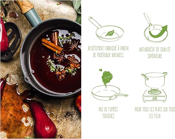 İndüksiyonlu hariç tüm ocak türleri için uygundur, 180 °C’ye kadar fırına dayanıklı ve bulaşık makinesinde yıkanabilir