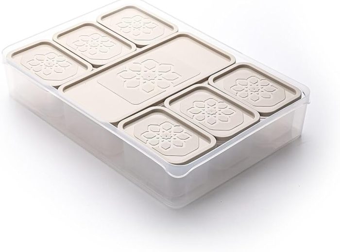 Modüler ve düzenleyici: Mutfakta düzen sağlar, dolap içi veya buzdolabında kolayca yerleştirilebilir.