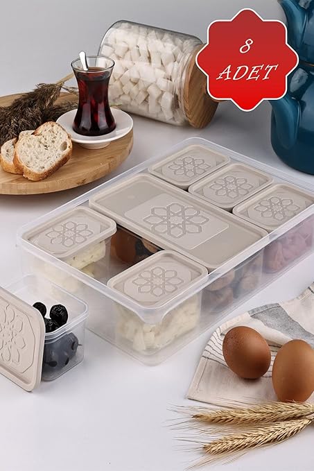 8 parçalık set: Kahvaltılıklar, atıştırmalıklar ve diğer gıdalar için ideal saklama çözümü sunar.