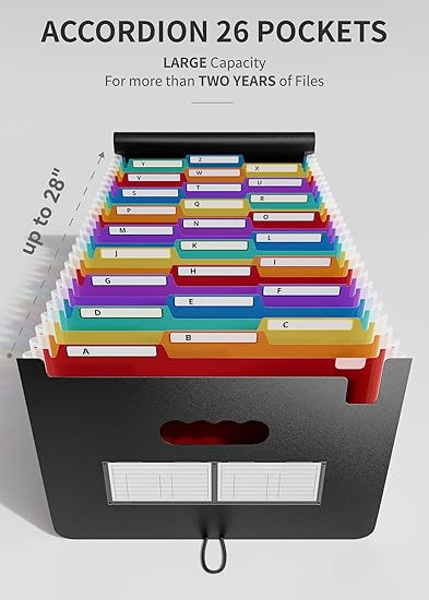 【Yüksek kapasite】 Renkli klasörlerimiz daha yüksektir ve tüm A4 ve harf dosyaları için uygundur, diğer klasörler yeterince yüksek değildir ve harf dosyaları için uygun değildir. Dosyalarınızı saklamak için mükemmel olan 26 bölme, 3500’den fazla sayfa tutar.
