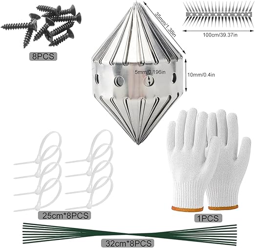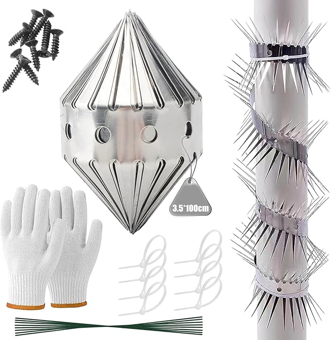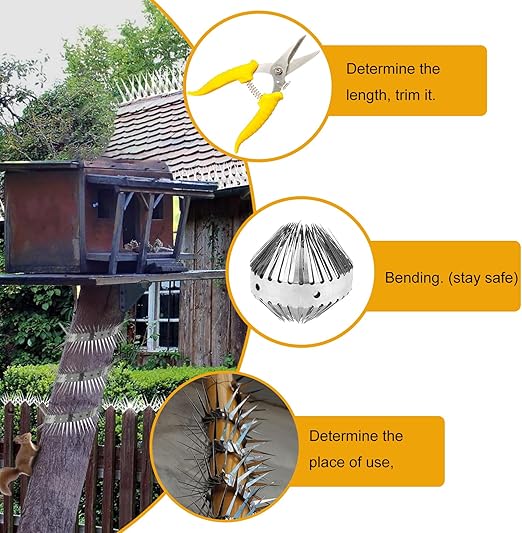 【Çok yönlü koruma】Gelinciklerin çatıya çıkmamasını sağlamak için. Sansar kovucu iniş borusu ile sansarların, kedilerin ve rakunların çatı veya çatı zeminine inmesini önleyebilirsiniz. Sansar kovucu hayvana zarar vermez, sadece sansarları uzaklaştırmaya yarar. Farklı uzunluklarda tel dikenler tırmanmayı zorlaştırır.