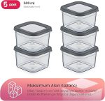 Life Tower Premium Saklama Kabı Seti 5 Adet 0,5 L Şık Görünüm ve Günlük Kullanım (Antrasit)