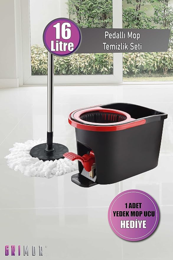 Life Turbo Pedallı Mop Temizlik Seti Kova Paspas 16 Lt +Yedek Mop Hediyeli