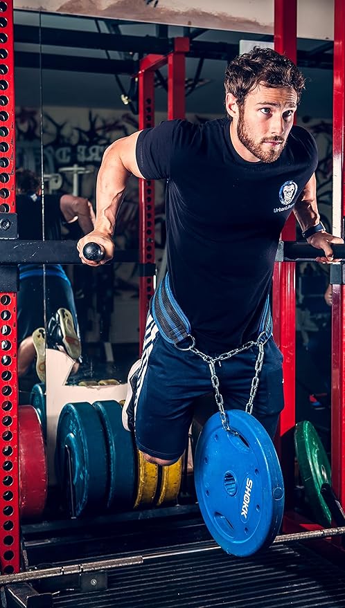 Lifters Dip Kemeri. 32 inç uzunluğunda, sağlam çelik zincirli daldırma kemeri. Ekstra kalın 6 inç sırt desteği. Ağırlık ve barfiks kemeri, barfiks, dip, ağırlık kaldırma ve güç kaldırma için