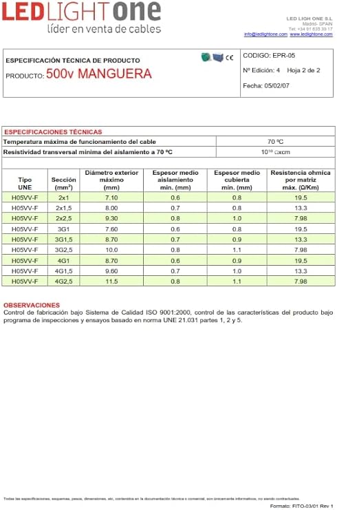 Kablo H05VV-F Hortum 3 x 1,5 mm, 15 m. Bileşim: 1 – Elektrolitik bakır iletken Sınıf 5 2 – PVC dolgu 3 – PVC izolasyon 4 – PVC kapak TM-2